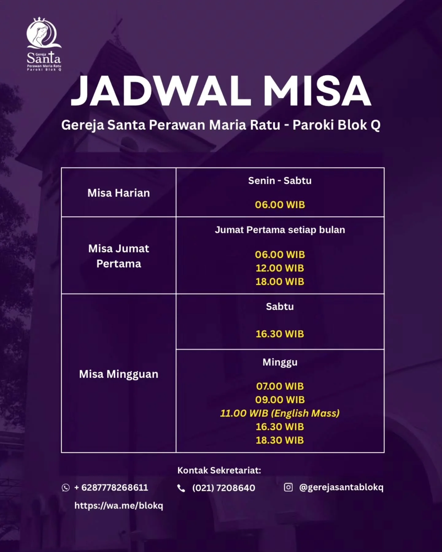 We warmly invite you to visit Santa Perawan Maria Ratu Church and walk through our Porta Santa as part of your pilgrimage journey this year!